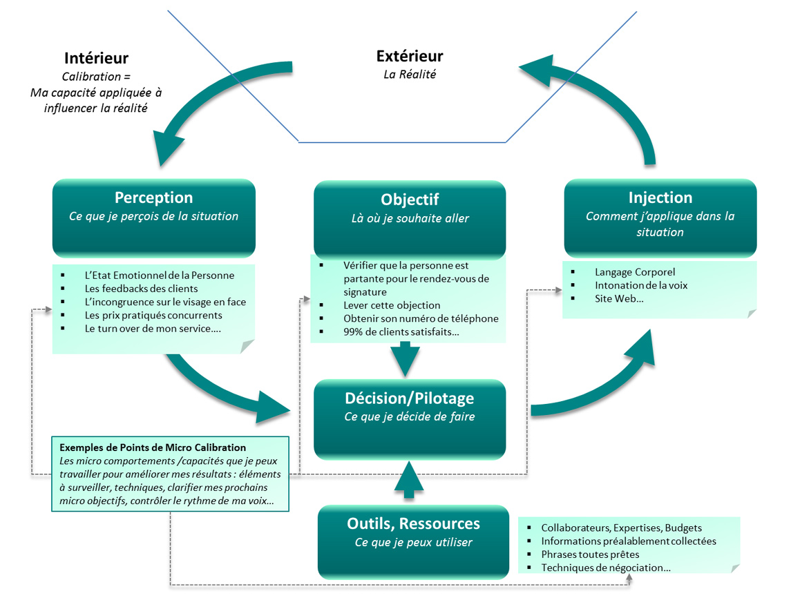 Comme nous l'avons vu, nous cherchons pour obtenir les résultats que nous souhaitons, à déployer une Calibration, à savoir la capacité à percevoir et à réagir opportunément dans la situation.
